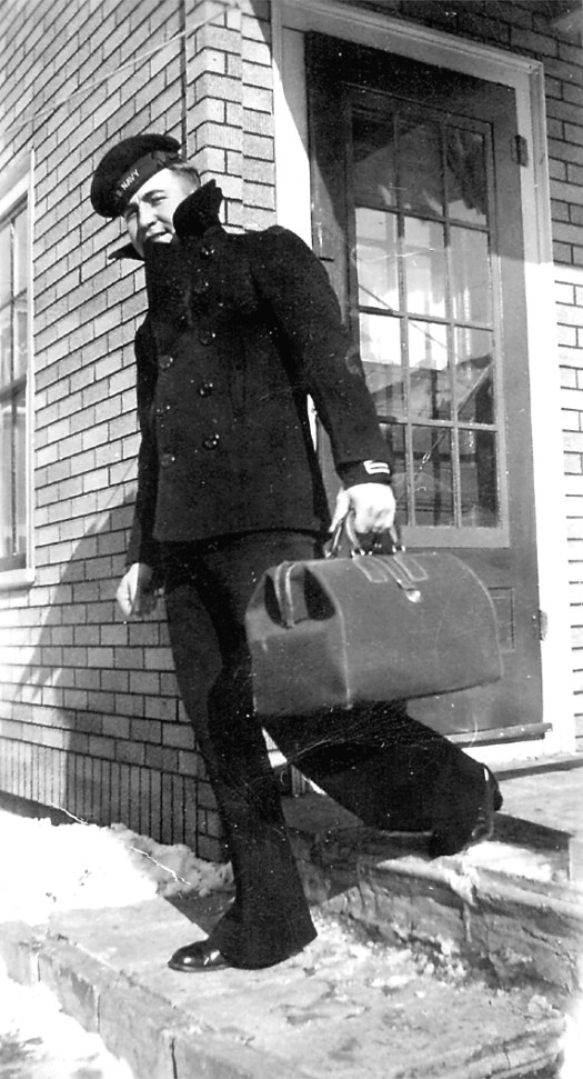 Seaman Al Trombi leaves his Framingham, Mass. home on his way back to the destroyer USS Wren. Photo provided