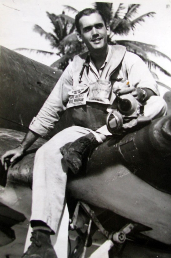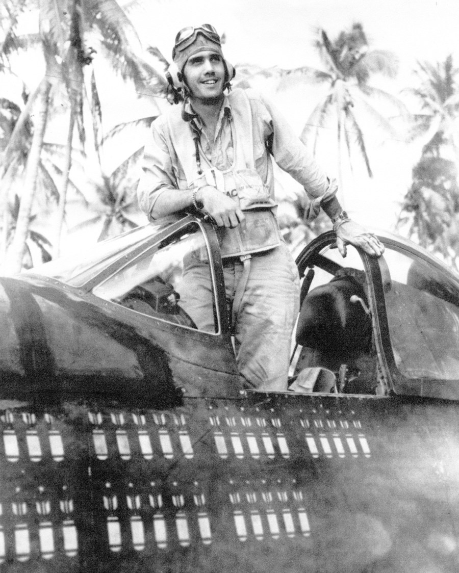 “We were flying over Mille Island in the Marshall Islands. Our target for the day was a Japanese gun emplacement. I was carrying two 500-pound bombs on my Corsair. I went in to drop my bombs and as I pulled out of my dive I got hit with something,” he said. “My buddy flying behind me told me I was losing oil. I called the skipper and told him I was heading for Majuro Island. It had the nearest friendly air strip.