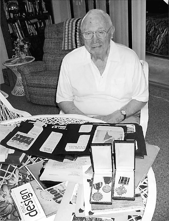 Woody Lindskog has a scrapbook full of memories. In the foreground are several medals he received for valor during World War II. The medal by itself on the right is the Distinguished Flying Cross he was awarded for attacking the Yamato, the largest battleship ever built in his Hellcat fighter. The two on the left are Presidential Unit Citations and the Air Medal. Sun photo by Don Moore