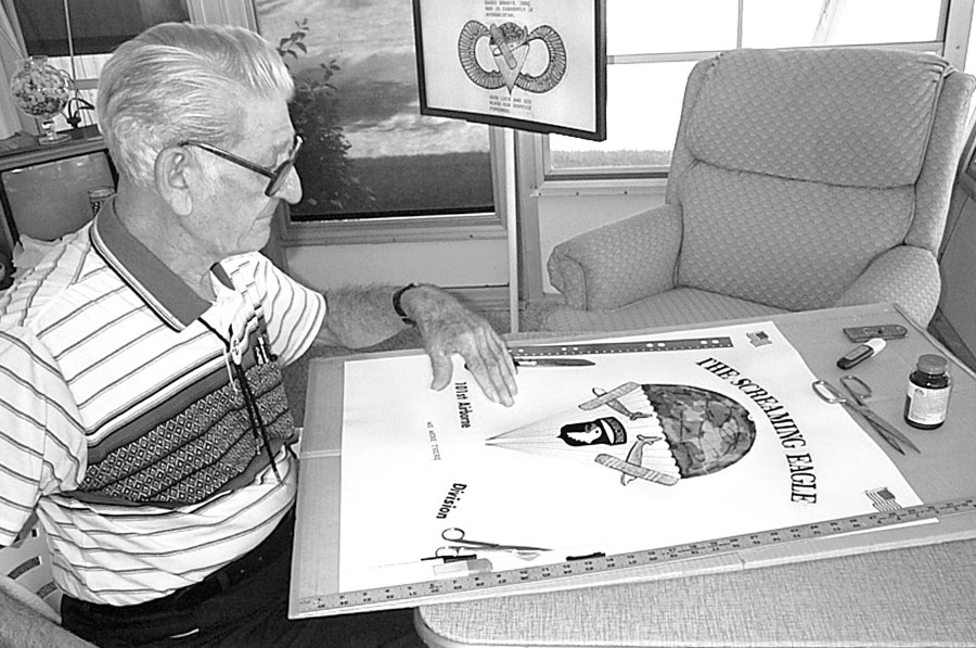 Robert Granche of Port Charlotte shown here working on a poster for the 101st Airborne Association’s reunion.