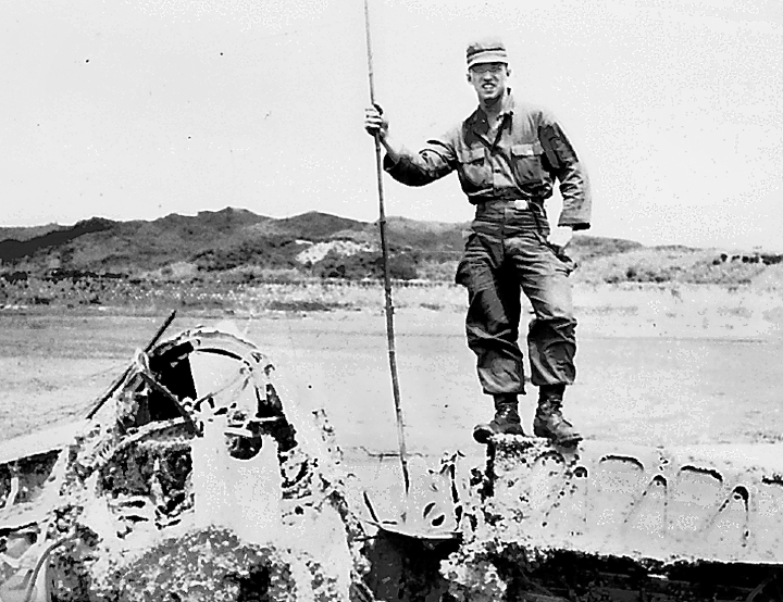 Repko stands on the wing of a downed Japanese airplane from World War II. It was taken at Sasebo Harbor, Japan before the Korean War began. Photo provided