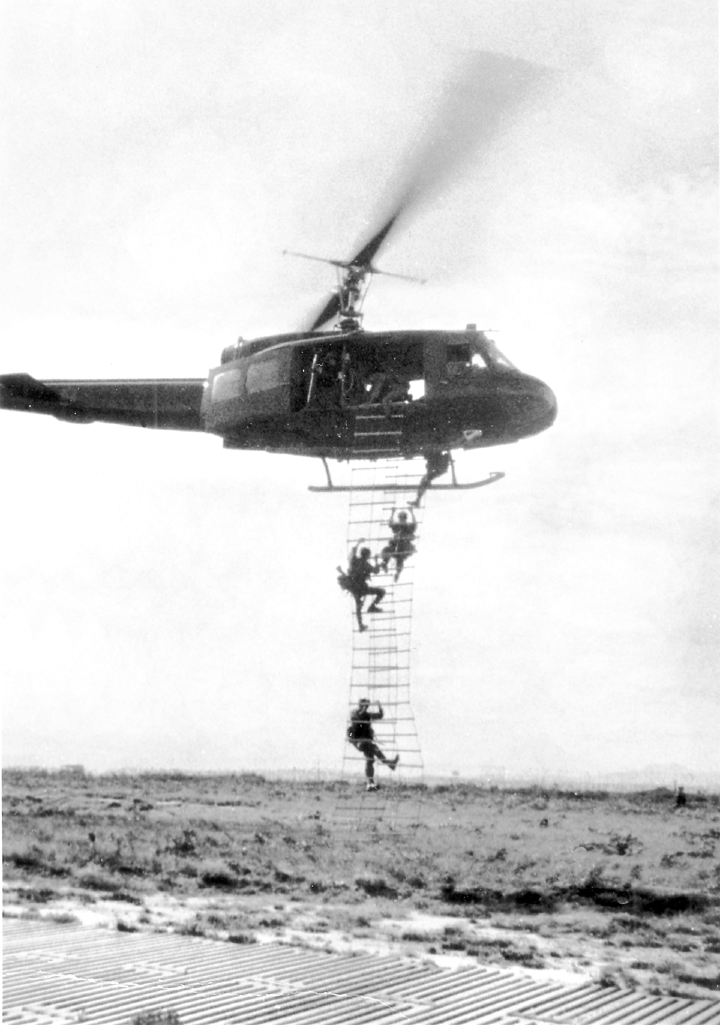 When it was time to get out of Dodge in a hurry, a Huey helicopter would fly in and hover with a couple of ladders flapping loose as members of the recon team climbed aboard. Photo provided