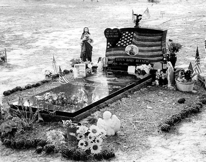 In the shade of a stand of Florida slash pines on a sandy patch of ground in Cedar Key Cemetery Lance Cpl. Brian Rory Buesing was buried. He was one of the several hundred American service personnel killed during the fighting in Iraq up till this time. Photo provided by William Buesing, Jr.