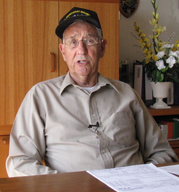 Telling his story: Harold Clark tells his story for the Sun. He served in five different merchant ships in the Atlantic and Pacific during World War II. Sun photo by Don Moore