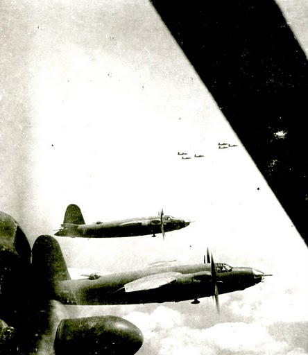 Pictures Brast took show a couple of B-26s in formation headed for the target and a single Widowmaker dropping its bombs over the target.