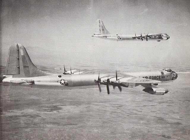 The super bomber was powered by six 3,500 hp. Wasp propeller-driver engines mounted in reverse on the trailing edge of the wings. Added later were two jet pods on the bomber’s wing tips.