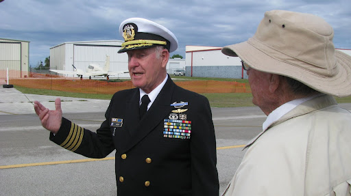 Captain John Arens has done it all which is obvious from the emblems and ribbons on his chest. He wears the Combat Infantryman’s badge, Aviator’s Wings, Airborne Ranger’s insignia, Diver’s insignia, and ribbons that cover World War II, Korea, Vietnam, and Desert Storm. Photo by Don Moore/Punta Gorda Air Show March 25, 2012.