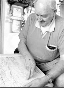 Tom Miller of Port Charlotte, Fla looks at a military map of the Churon Valley, north of the 38th Parallel where he fought as a member of the 37th Artillery Battalion during the Korean War. Sun photo by Don Moore