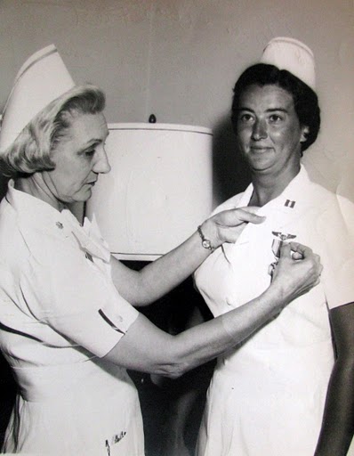 She is being awarded the Air Force Commendation Medal (right) for performing her duties as a operating room and flight nurse in exemplary fashion following her service in Vietnam. Photo provided