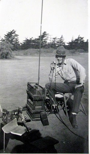 Sgt. George Hire is pictured on a shortwave radio in the field somewhere during World War II. Photo provided
