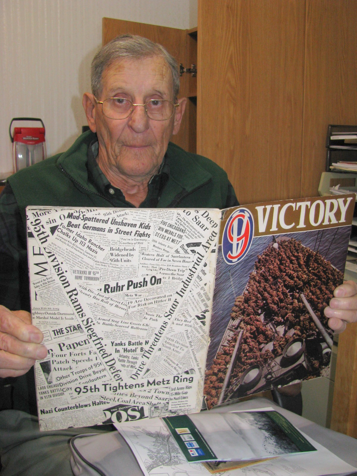 “On V-E Day (Victory in Europe) we were in some little town in the Ruhr Valley that I can’t remember the name of any more, along the Elbe River,” he said. “The 95th Division became the third division shipped back to the States. The first two divisions were sent directly to the South Pacific, but we were sent back to Boston.