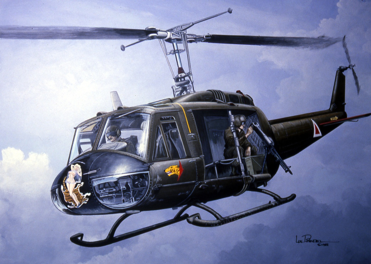 The Huey was the workhorse of the Air Cavalry in Vietnam. It flew young soldiers into battle and dead soldiers out of the war zone. Art courtesy  Lou Drendel/Aviation-Art.net