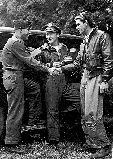 Six weeks earlier his fighter had been hit by German anti-aircraft fire during another fighter sweep. That time he limped back across Allied lines. He bailed out in Normandy over St. Mere Eglise, the first French town liberated by the Americans on D-Day.