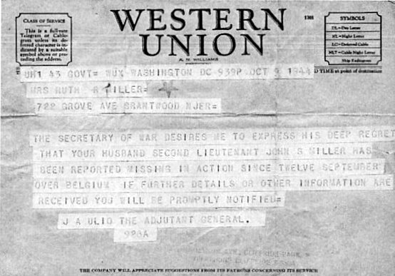 This is the Telegram his wife received after he was shot down in his P-51 Mustang while flying over Nazi occupied Europe during World War II. Telegram provided