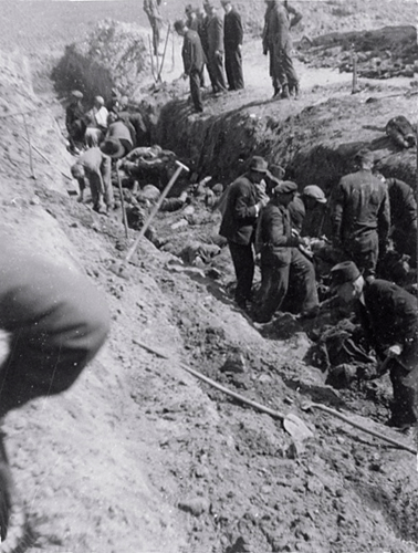 German civilians were forced to recover the remains for 1,016 concentration camp prisoners burned to death by German SS Troops at Gardelegen during the closing days of World War II. Sgt. Fred Strass was a member of the 102nd Infantry Division that oversaw the undertaking. Photo provided