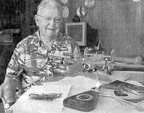 Raymond Hook of Lemon Bay Isles mobile home park in Englewood was the radio operator aboard a B-24. he sits at his dinning room table with his records and a model of the bomber in front of him. Sun Photo by Don Moore
