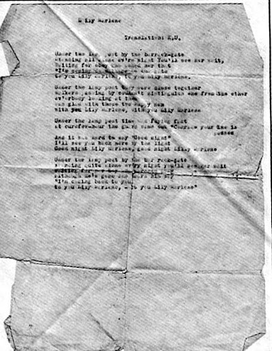 “Lily Marlene Translation” is what it read at the top. The words to the poem became a wildly popular barracks ballad on both sides in the Second World War.