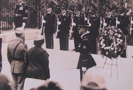 Houle stands at the left foreground with his back to the camera during a wreath laying ceremony at the Tomb of the Unknowns in Arlington Cemetery in Washington, D.C. Photo provided