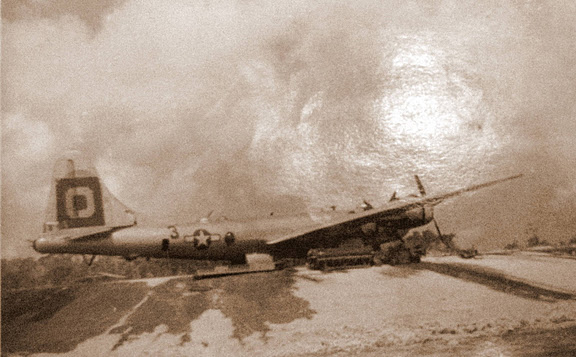 A B-29 “Superfortress” bomber sets on a runway at Saipan where they flew out of on their way to Tokyo during World War II. George Gallagher’s submarine was also based on Saipan part of the time during the war. Photo provided.