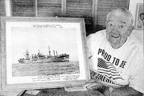 “On Easter Sunday morning, April 1, 1945 I was coxswain of a Higgins Boat in the first wave that attacked the beach at Okinawa. I was standing up on my platform steering my Higgins Boat and bullets were whizzing by my ears,” he said. “We brought the 77th Infantry Division ashore — Gen. Buckner’s division. He was killed at Okinawa and they named the bay, ‘Buckner Bay’ after him.