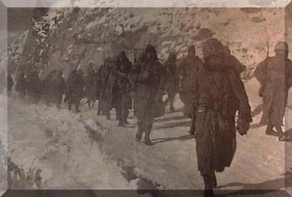 U.S. Marines trudge south to the coast seventy-five miles away in deadly cold weather. Many Leathernecks died on the long retreat. Photo provided