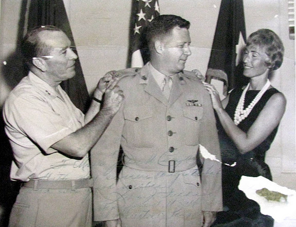 Campbell is shown when he made major. Lt. Gen. Louis Field, director of personnel for the Marine Corp, pins his oak-leafs on his right shoulder while his wife, Marilyn, does the same for his left shoulder. Photo provided