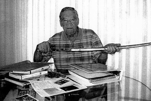 Russell Holland of Punta Gorda, Fla. holds a Japanese dress saber he acquired during the occupation of Japan following World War II. He fought in Iwo Jima with the 5th Marine Division. Sun photo by Don Moore