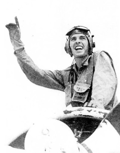 He learned to fly the Navy’s hot, new gull-winged Corsair. It was a fighter with folding wings for carrier use that could fly at 450 mph, had six 50-caliber wing-mounted machine guns and carried two 1,000 pound bombs under its fuselage.