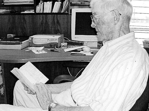 At 82 Weber looks through the pages of his World War II flight log. The old fighter pilot flew 150 missions over enemy territory during the war. Sun photo by Don Moore