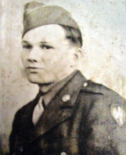 This badly damaged picture of Pfc. Bill Waits of Nocatee, Fla. is his only service picture. He served in the Army’s 26th Division with Gen. George Patton’s 3rd Army in France and spent seven months in a German POW camp before he was liberated along with another 110,000 other Allied prisoners. Photo.provided