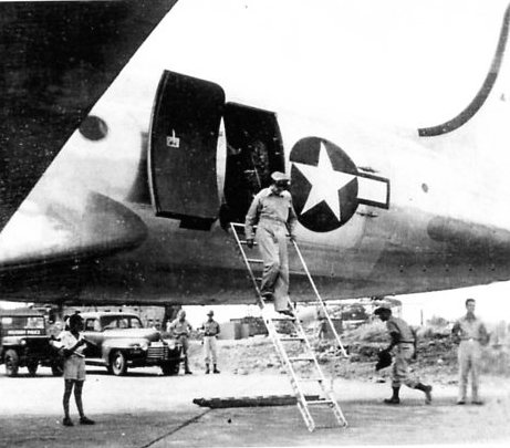 When they landed at Okinawa, on the first leg of their journey to Japan, Normile switched planes. He became the copilot on the accompanying B-25 carrying the rest of the general’s staff. A major took over as copilot on the plane MacArthur was in and flew the remainder of the way to Yokohama with Col. Rhodes still flying the C-54.
