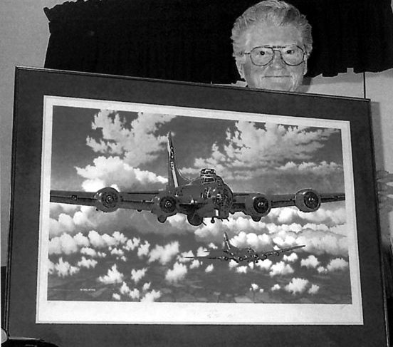 Bob Normile of the Pine Brook subdivision in Venice, Fla. holds a picture of a flight of B-17 bombers like the one he co-piloted when he flew Gen. Douglas MacArthur and his staff to the surrender ceremonies in Japan, held aboard the battleship USS Missouri, which ended World War II. Sun photo by Don Moore
