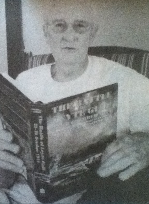 Lawrence Frazer of South Gulf Cove, Fla. served aboard the destroyer USS Killen in World War II. He’s looking at a book entitled “Battle of Leyte Gulf” by Thomas Cutler. He and his ship took part in that battle. Sun photo by Don Moore