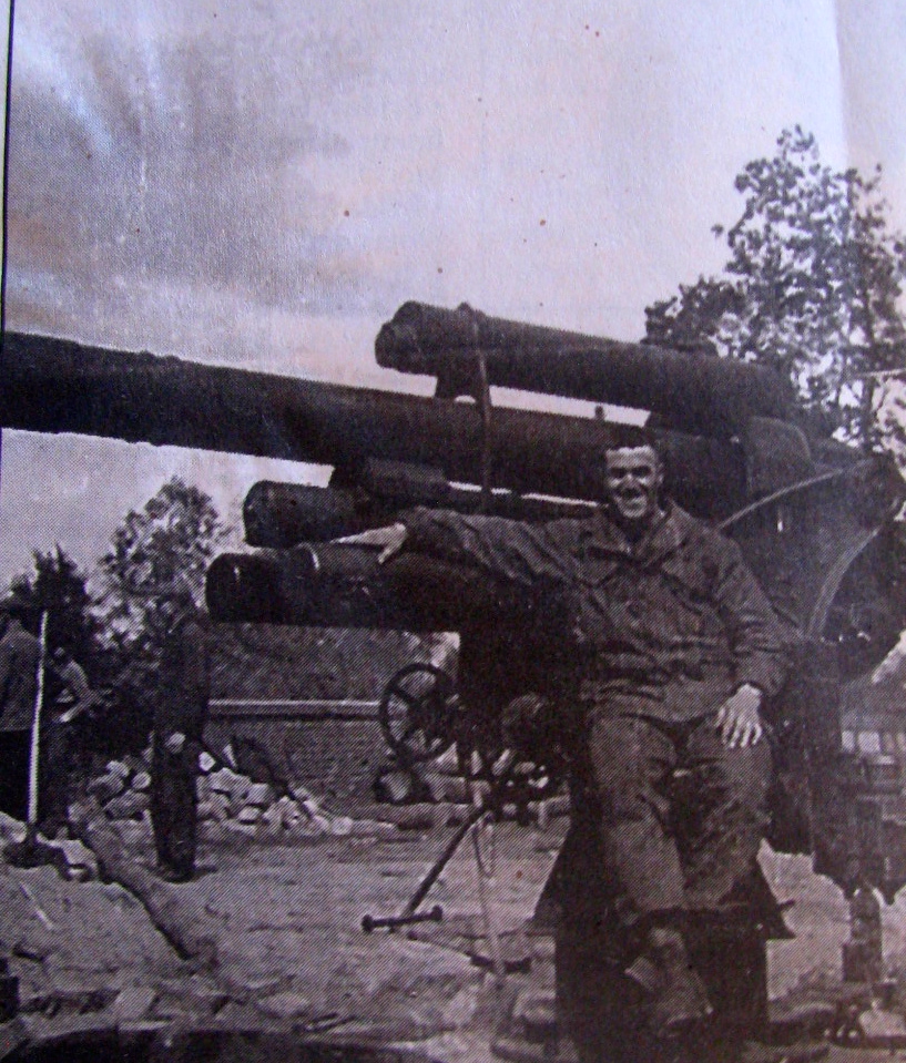 Bill Nickell stands beside a German 88 mm artillery piece that was pointed at him in Zerbst, Germany, during the closing days of the war. This shot was snapped by a buddy after the war was over. Photo provided
