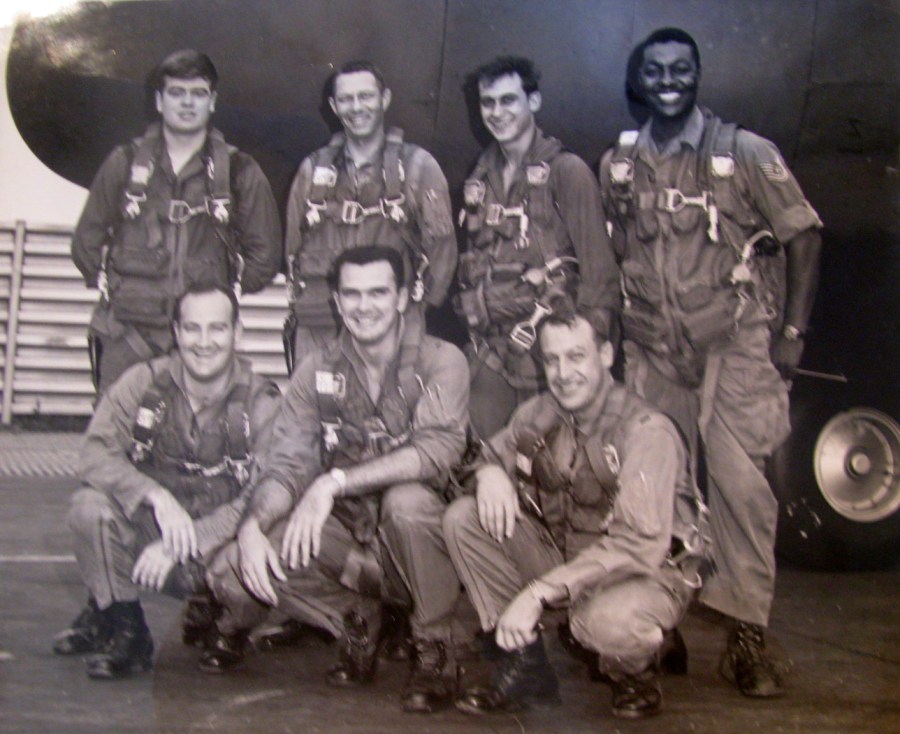 This is Lt. Col. Ron Dudley’s C-130A transport crew when he was flying secret missions from the Royal Thai Air Force base in Thailand in 1967 during one of his three deployments to Vietnam. He’s the fellow in the center squatting with dark hair. Photo provided