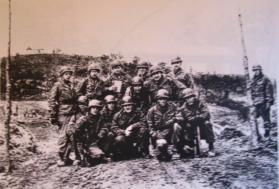 This is all that was left of Lawrence Gilbert’s 70-man unit in Korea after a few months of fighting – – 18 soldiers. He’s not in the picture because he was out sick. Photo provided by Lawrence Gilbert