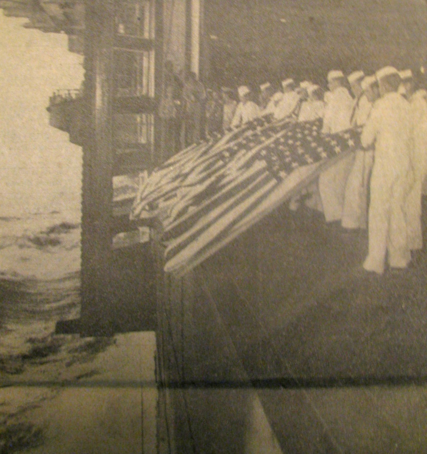 There were so many dead sailors after the “Battle of Leyte Gulf” they buried them at sea five at a time on the Intrepid, Sauer said. This picture that appeared in the Detroit Free Press on Monday, July 30, 1943 depicts the burial service. Photo provided by Fred Sauer