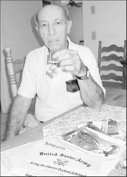 Vincent Durand holds the Distinguished Flying Cross he received for a particularly hazardous flight over Berlin as a top turret gunner on a B-24 bomber during World War II. Sun photo by Don Moore