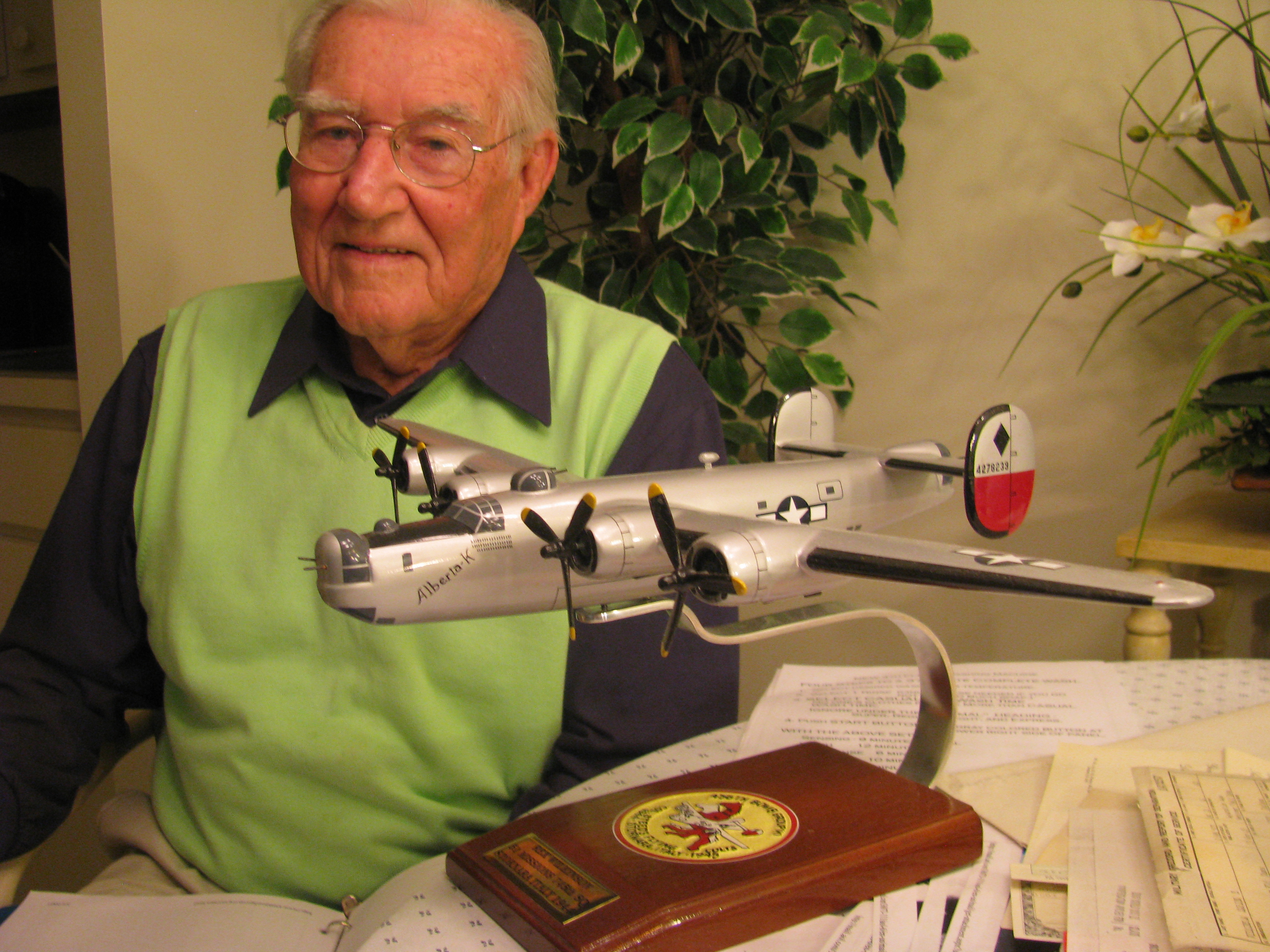 1st Lt. Rex Wilkinson flew a shiny, silver B-24 “Liberator” bomber he named “Alberta K,” for his wife, from a base at Stornara, Italy on 51 combat missions in 1944 as part of the 745th Squadron, 456 Bomb Group, 15th Air Force.