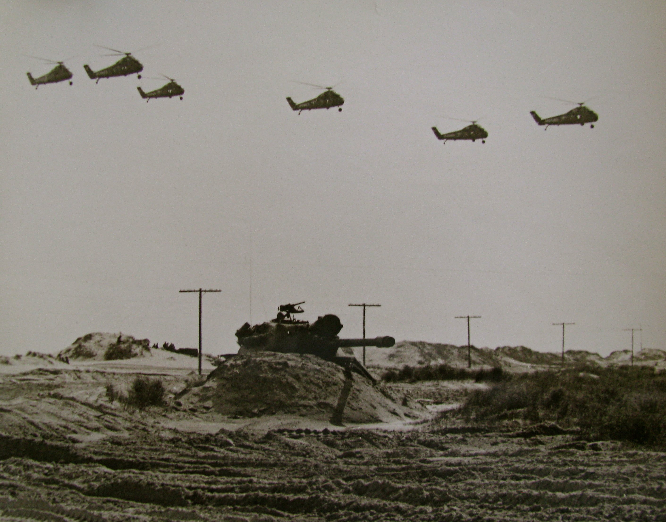 Marines were playing amphibious landing war games. A tank holds a beach head while a squadron of H-34 Sikorsky helicopters, like the kind Jasica flew, flies overhead. Photo provided