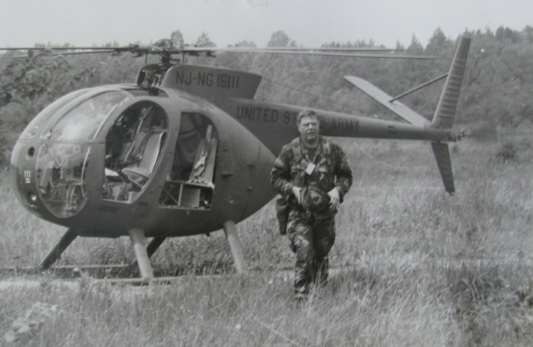 Dickinson leaves his OH-6 “Little Bird” helicopter during a training exercise at Fort Drum, N.Y. Photo provided