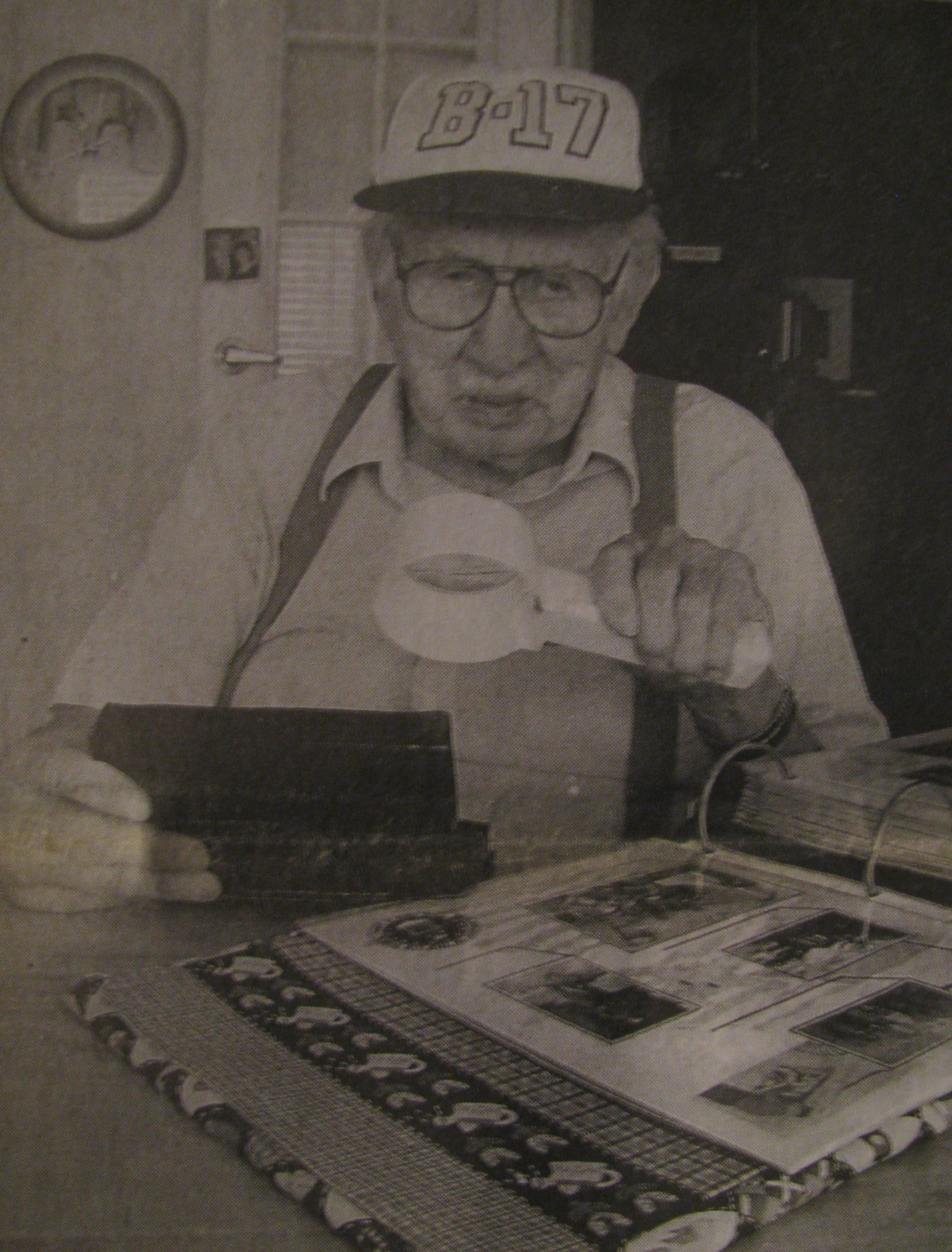 At 93 Charles Renshaw, of River Eagle mobile home park near Punta Gorda, Fla., searches a photo album of World War II photographs he took while serving with the 8th Air Force in England. Sun photo by Don Moore