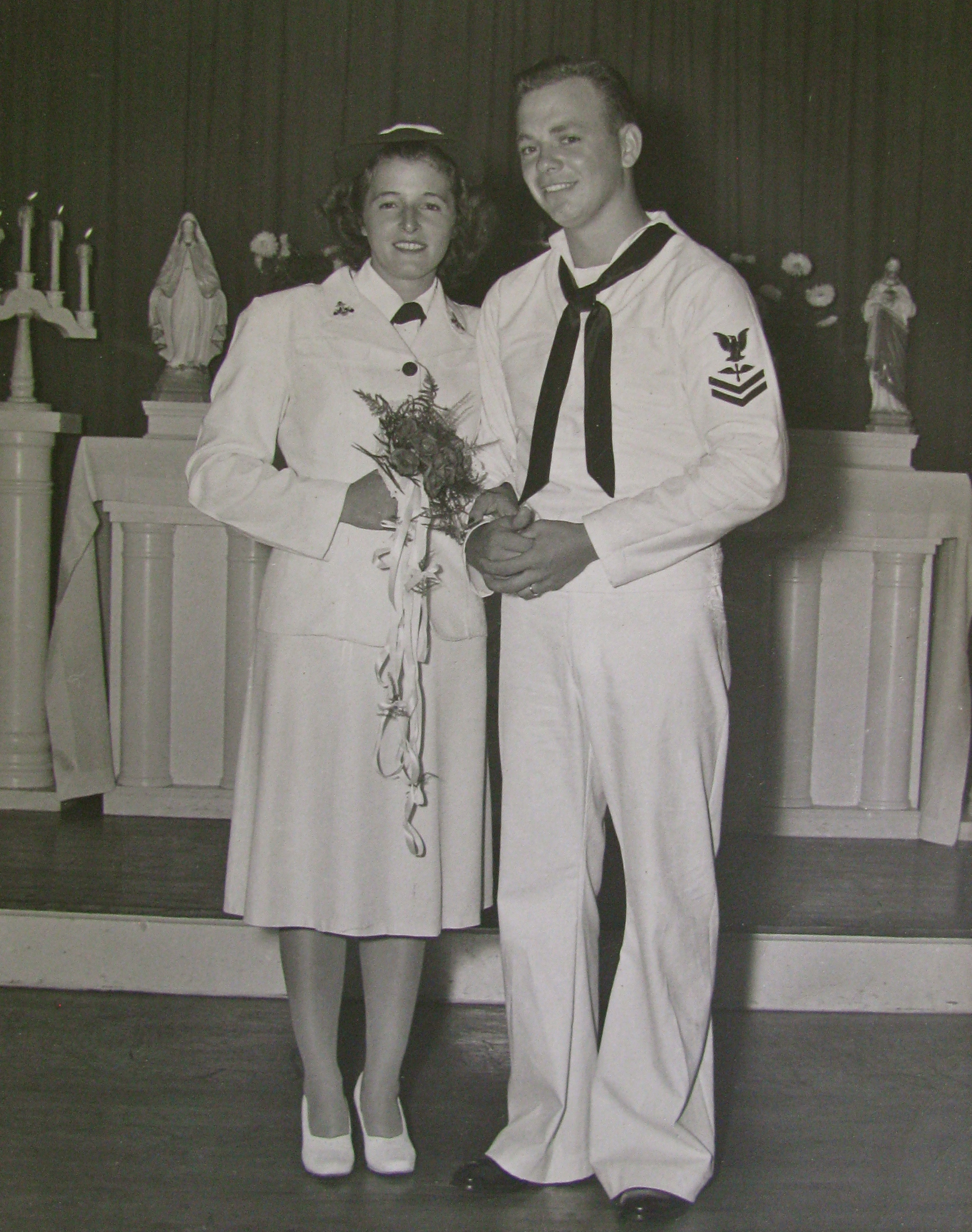 Kay and William Mc Neil in uniform on their wedding day, Aug. 21, 1945, at the base chapel