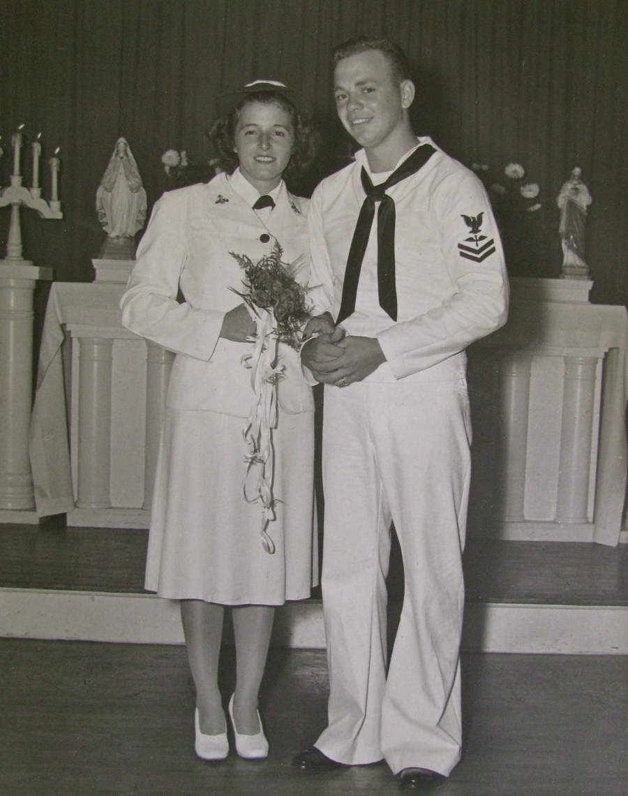 “We were married at the base chapel on Aug. 21, 1945. We got a 72-hour pass. In those days there were only two hotels in Pensacola and they were both full. My husband talked to the manager of the San Carlos, the only hotel service people could stay in, and showed the manager his 72-hour pass. It had his name on it–‘William McNeil.’