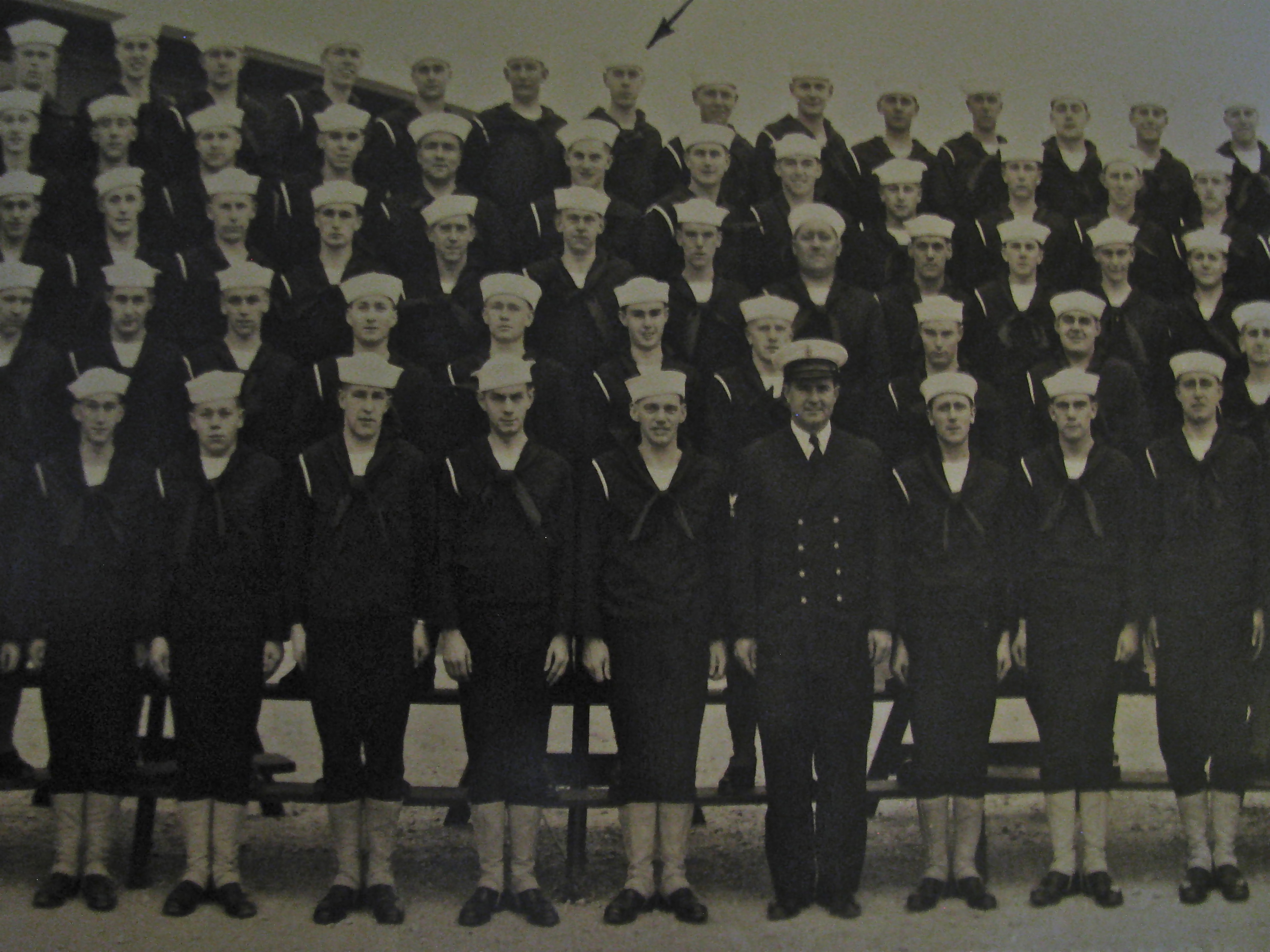 This is Aviation-mechanic Robert Smith’s boot camp graduation picture. He’s the fellow under the ink-arrow on the top row center. This was Company 283 at the Green Bay, Wis. Naval Training Center in March 1943. Photo provided