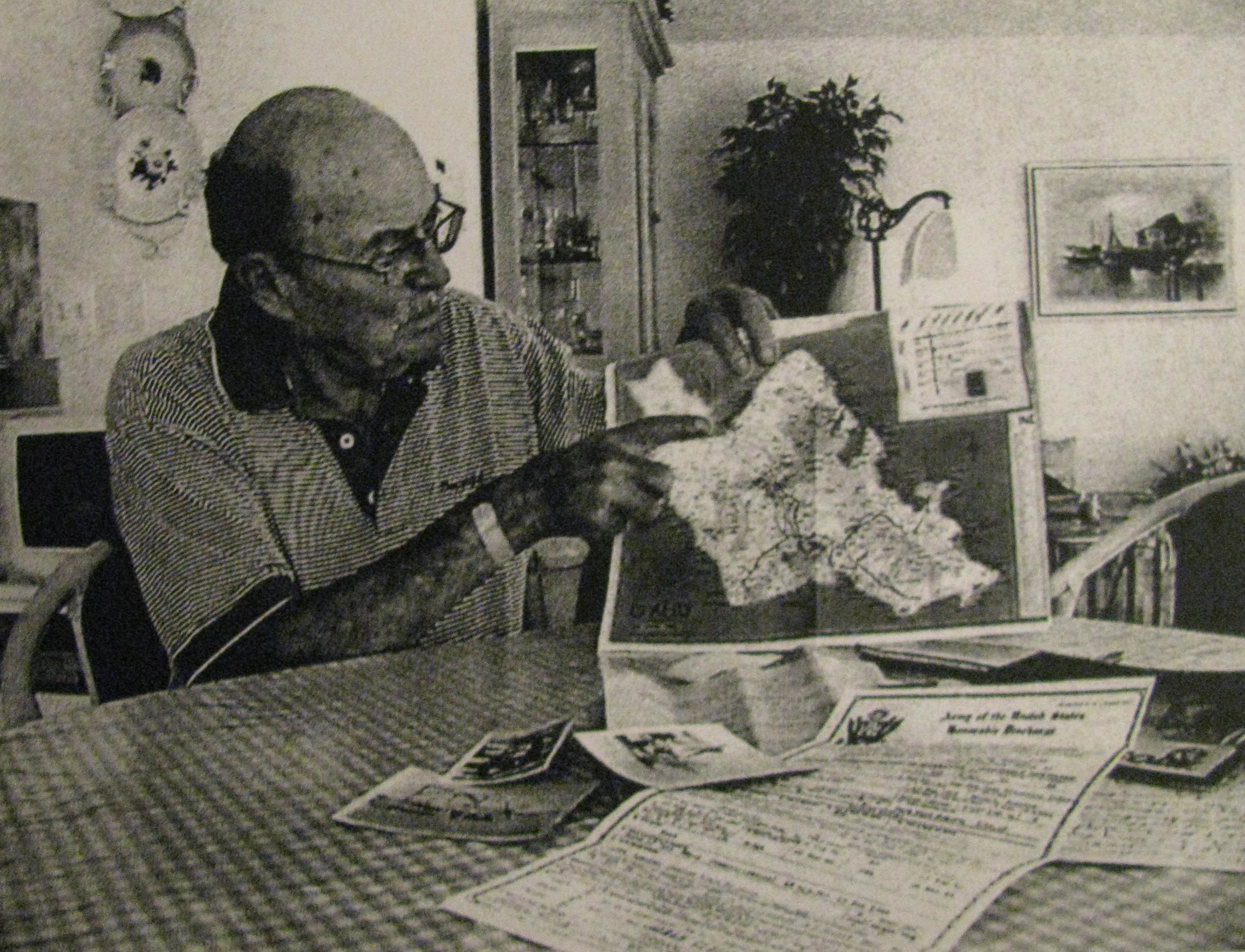 Sherfick points to Haleiwa Field on the map of Oahu Island in Hawaii where he and the 47th Pursuit Squadron where based during much of the Second World War. Photo provided