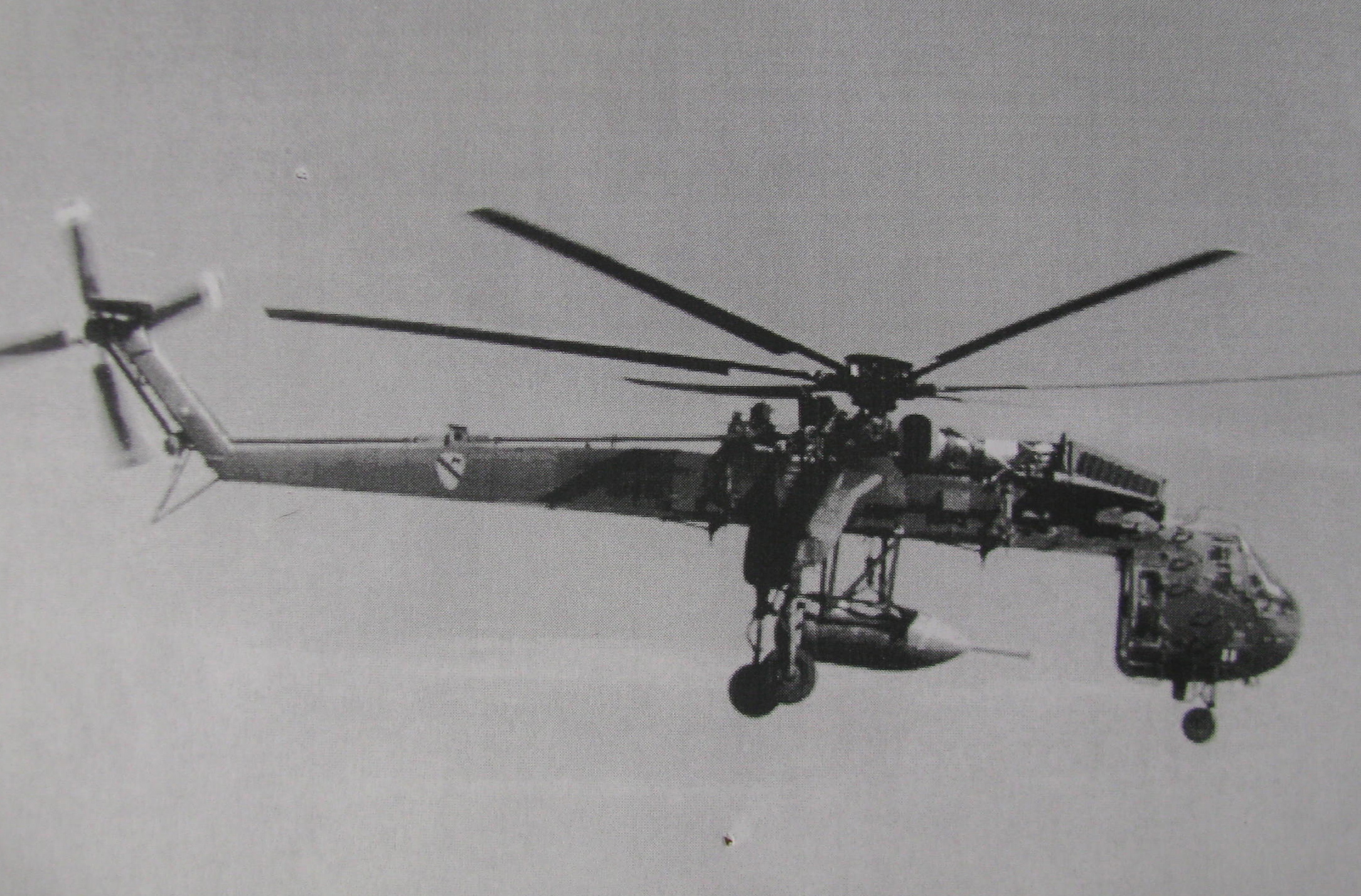 “They looked like giant praying mantis. They were 99-feet-long from the front of their rotor to the tip of the aircraft. Their rotor diameter was 72-feet. The A-Model ‘Sky Crain’ could pick up 20,000 pounds and the B-Model 25,000 pounds.