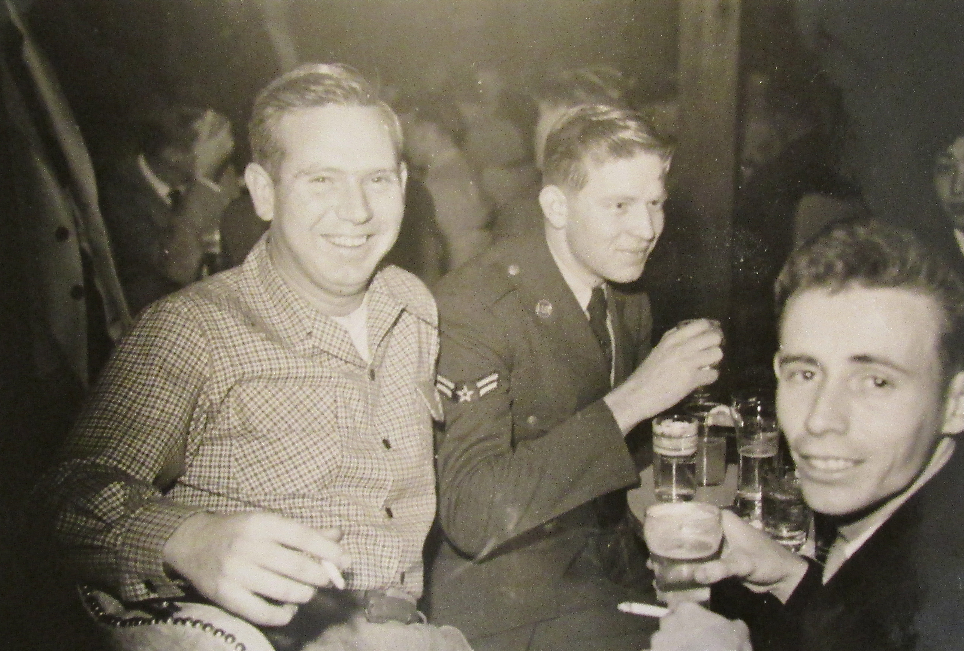 Perdue (bottom right corner) was taking some time off at the base bar at Johnson Air Force base outside Tokyo. He became a cryptographer decoding secret Morris Code messages from the North Korean Air Force during the Korean War.