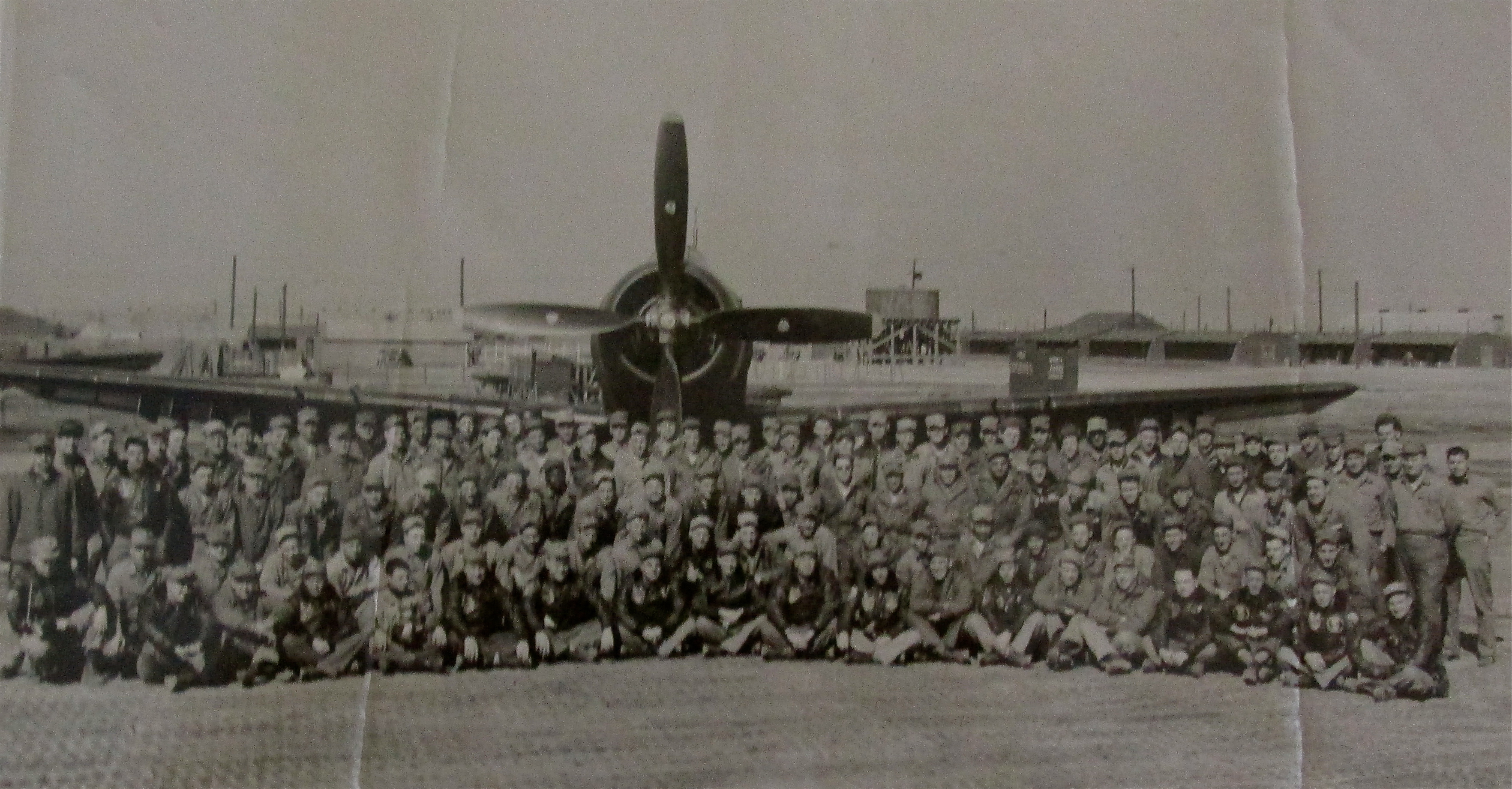 Cote's entire unit in Korea is pictured grouped around a Douglas A-1 "Skyraider," one of the kinds of planes Cote's repair crew serviced in Korea during the war. Photo provided