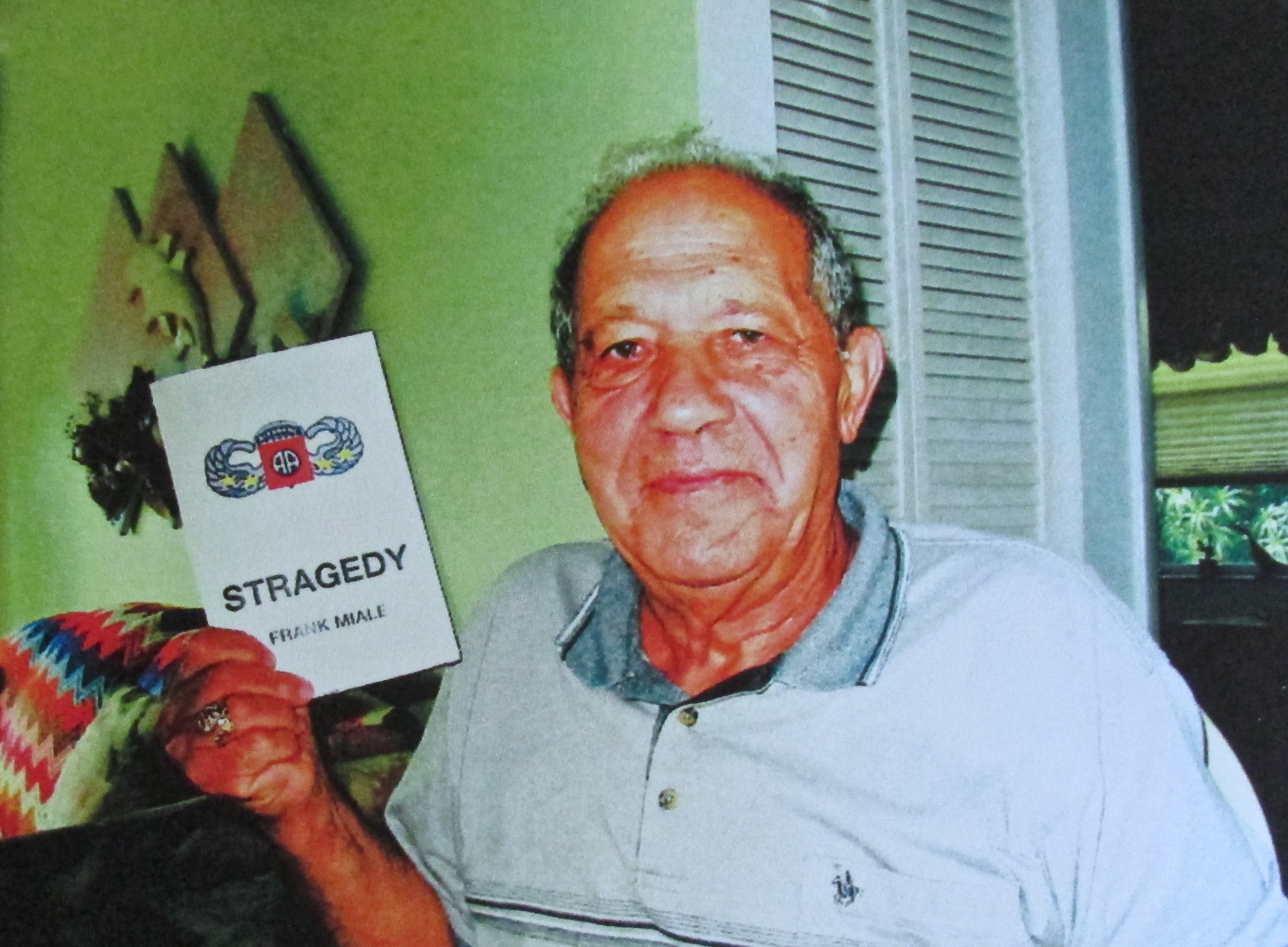 Frank Miale made four combat jumps with the 82nd Airborne Division in World War II. He survived the war, came home and wrote a book called “Stragedy” about his war experiences.
